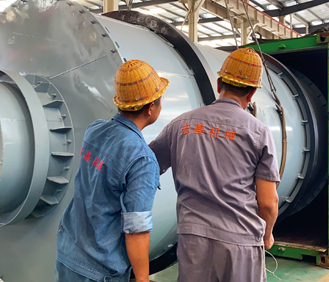 我公司生產(chǎn)的固、危廢回轉窯日處理工業(yè)廢棄物規(guī)格型號根據(jù)有十一個產(chǎn)品,筒體直徑X長度在?2.2×9m-?4.5×16m之間,轉速0.05-2r/min,配套主電機功率18.5KW-55KW,煅燒溫度850-1200度,能實現(xiàn)20-100t/d固、危廢無害化、減量化、資源化焚燒。